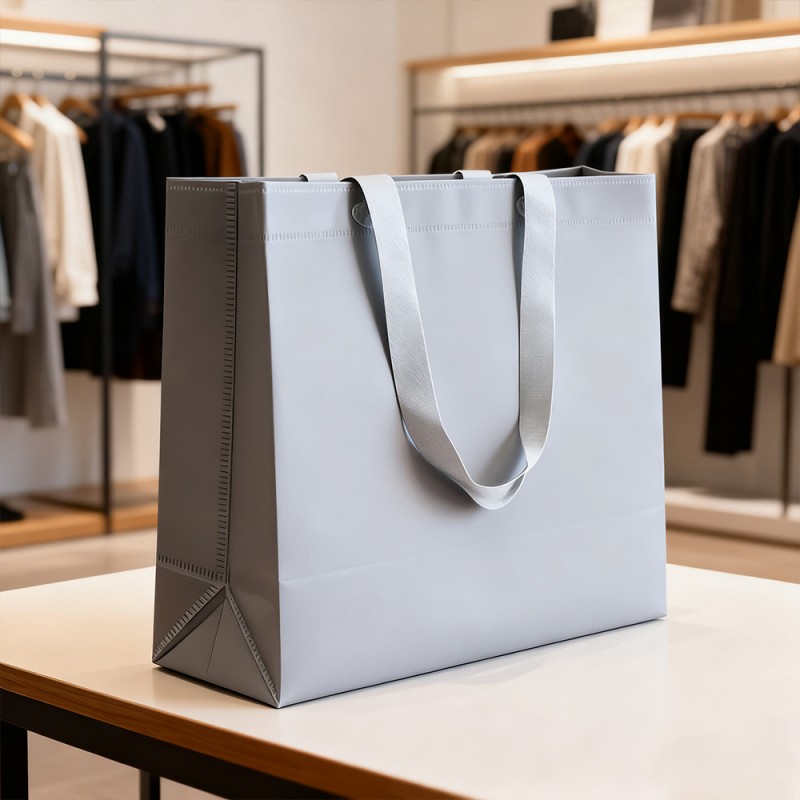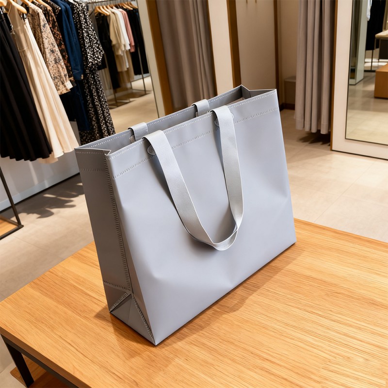 Drielaagse structuur: de buitenste laag van BOPP zorgt voor volledige waterdichtheid en uitstekende printcompatibiliteit. Biedt uitstekende vochtbestendigheid, slijtvastheid en een mooie uitstraling. Het speciaal behandelde kraftpapier heeft een gladde en duurzame tussenlaag, waardoor het draagvermogen wordt vergroot en de natuurlijke en milieuvriendelijke uitstraling behouden blijft. De binnenste laag van de parelfilm creëert een luxueus microlichteffect door licht te breken, waardoor de sensorische waarde van het product wordt versterkt. Uitstekende fysieke eigenschappen: de tas en het handvat zijn verbonden door ultrasone golven, waardoor betrouwbare prestaties worden gegarandeerd, zelfs als de inhoud zwaar is. De stabiele combinatie van de drielaagse structuur voorkomt delaminatie en handhaaft de structurele integriteit onder verschillende omgevingsomstandigheden. De onderste draagstructuur zorgt voor zelfdragende stabiliteit en voorkomt vervorming van de tas. Deze materialen zijn getest en bestand tegen verschillende klimatologische omstandigheden, waardoor ze geschikt zijn voor verschillende markten en seizoenen. Milieu-innovatie: Kraftpapier wordt geproduceerd met behulp van biologisch afbreekbare lijmen die voldoen aan de milieueisen. Door milieuvriendelijke inkt op waterbasis te combineren met een productieproces waarbij geen lijm wordt gebruikt, is de mate van materiaalterugwinning verbeterd en is de CO2-uitstoot verminderd. Maatwerk met hoge specificaties: wij bieden uitgebreide maatwerkdiensten. Met onze volautomatische diepdrukmachine met 10 kleuren kunnen we de prachtige ontwerpen van onze klanten perfect op de zakken presenteren. Handelsmerken en belangrijke informatie kunnen ook worden benadrukt door middel van processen zoals hot stamping en zeefdruk. De specificaties, afmetingen en handgreepstijlen van het product ondersteunen de klantaanpassing volledig.
