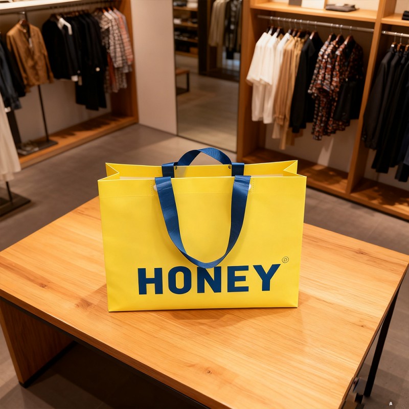 QINGDAO RED GOLDEN STAR PACKAGING AND PRINTING CO., LTD's PP gelamineerde kraftpapier schoudertas compatibel met milieuvriendelijkheid en bruikbaarheid. Het lamineren van wit kraftpapier en PP-composietmateriaal heeft zowel milieuverantwoordelijkheid als commerciële haalbaarheid, met een mooi en elegant uiterlijk dat volledig voldoet aan de verpakkingseisen van hoogwaardige producten.