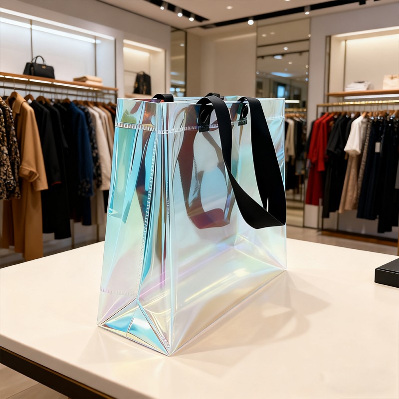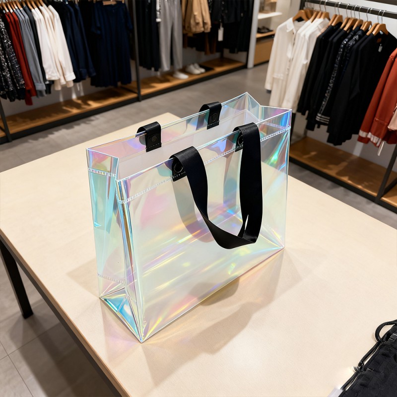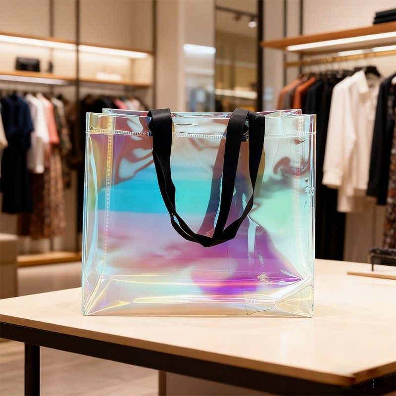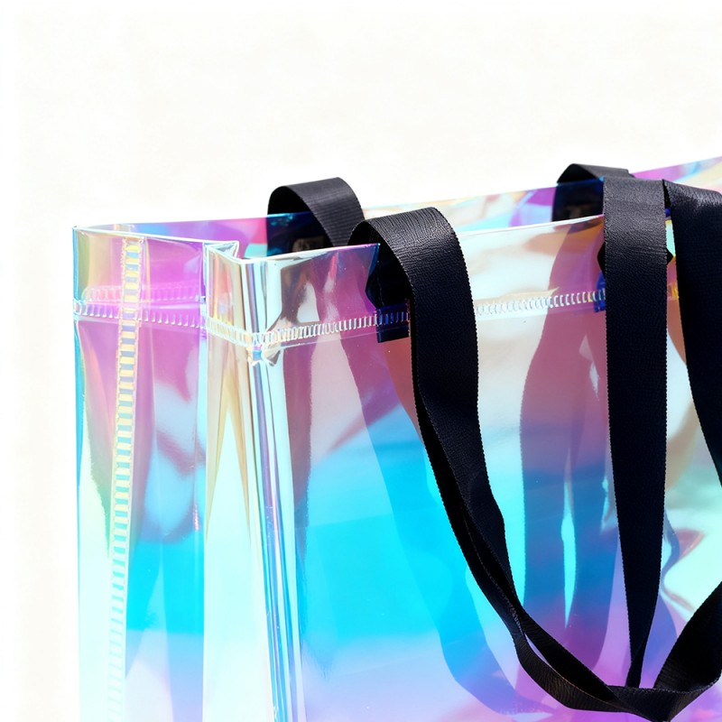 Dynamische visuele aantrekkingskracht: De speciale film van deze tas creëert verbluffende kleurovergangen die veranderen met het perspectief. Deze regenboog heeft een prachtige glans die lijkt op zeepbellen, waardoor een levend kunstwerk ontstaat. Deze behandelingsvorm in het materiaal zal bij langdurig gebruik niet vervagen. Duurzame structuur: regenboogfolie heeft niet alleen een mooi oppervlak, maar biedt ook uitstekende bescherming. Het oppervlak is krasbestendig, slijtvast en vochtbestendig en kan zijn effectiviteit behouden, zelfs na langdurig gebruik. Deze handtas is gemaakt van hoogwaardige materialen en ultrasone verbindingstechnologie, waardoor visuele aantrekkingskracht wordt gecombineerd met duurzaamheid. Uitstekend maatwerk: klanten kunnen hun merk, handelsmerk, slogan en andere informatie perfect onder de aandacht brengen door de prachtige uitstraling van regenboogfilm. Een retourpercentage van 100% kan resulteren in een hoge productblootstelling voor klanten. De maat kan worden aangepast en de handgreep kan worden gekozen op basis van specifieke merkvereisten, waardoor flexibiliteit wordt geboden voor verschillende marketingbehoeften. Milieuvoordelen: Deze tas is ontworpen voor meerdere toepassingen en ondersteunt duurzame verpakkingsinitiatieven. De duurzame structuur stimuleert herhaald gebruik, vermindert de impact op het milieu en vergroot de merkbekendheid.